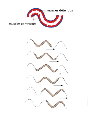 On pourrait s'attendre à ce que la contraction des muscles longitudinaux provoque une augmentation du tour de taille de l'animal quand il se raccourcit, mais c'est impossible puisque la cuticule est déjà distendue au maximum par l'énorme pression interne. Les variations de longueur du ver sont donc minimes.