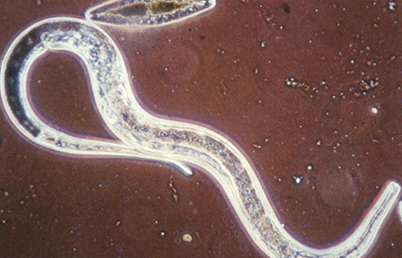 Chez la plupart des nématodes la larve L3 est la forme infectieuse qui migre au sein du corps de son hôte définitif tout en subissant plusieurs mues pour devenir l’adulte mature. Le parasite quitte finalement l’hôte définitif par les fèces sous forme d’un œuf entouré d’une coque. Cet œuf se retrouve dans l’environnement ou à l’intérieur d’un second hôte (l’hôte intermédiaire).